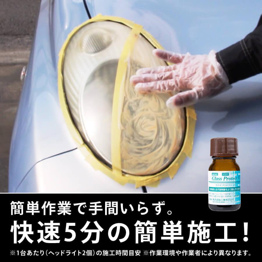 硬化ガラス質被膜と特殊UVカット剤がヘッドライトを長期間プロテクト