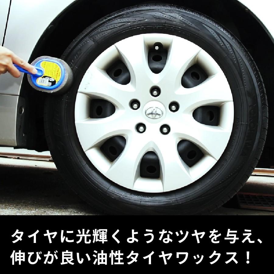 タイヤを傷める溶剤を含まない油性タイヤワックス。タイヤに輝くようなツヤを与えます。